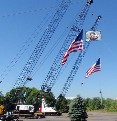 Three crawler cranes formed part of a tribute this weekend to all those who died in the world trade centre attacks of 2001 and those who have served their country and paid with their lives.