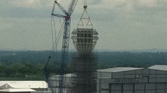 It is taking one of the tallest cranes in Europe to put the finishing touches to the structure of Manchester Airport’s newly constructed £16 million air traffic control tower.