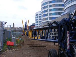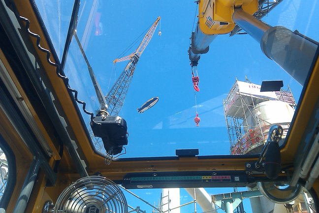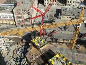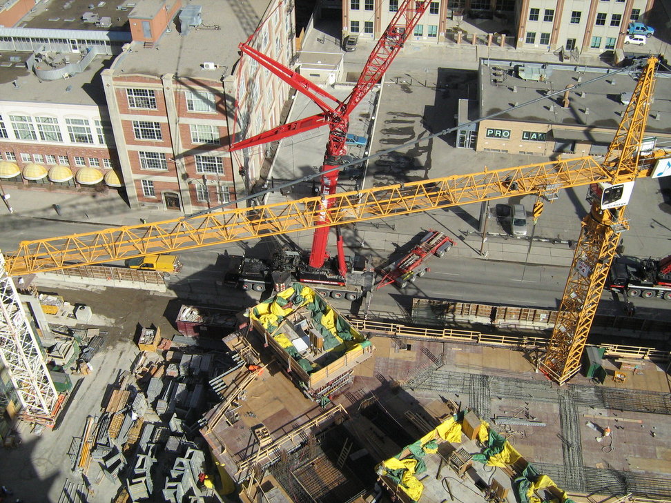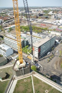 20. Building a Liebherr 500 tons of a Liebherr 140 EC-H on an elevator shaft in Cologne