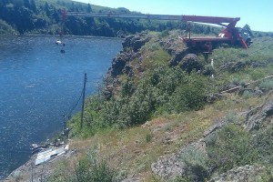 18. A pump being pulled on the North Fork of the Snake River in Southeastern Idaho