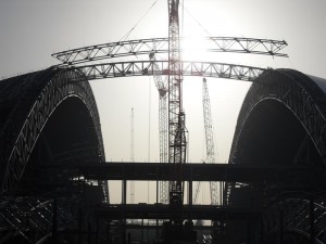 31. Bigge utilized several cranes and gantry systems to help place a portion of the San Francisco Bay Bridge