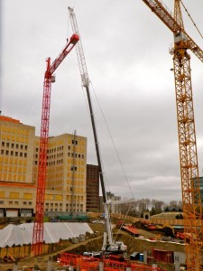 5. Mobilization of a Wolff tower kran at the Edmonton Parliament revamp project with a LTM 1400 with Fixed Jib