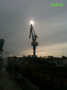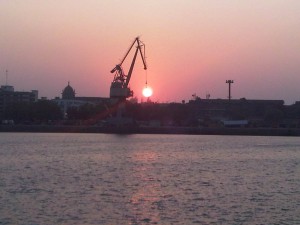 11. Port crane working at Mumbai port-“Looks like Holding the Sun and dipping in Sea”