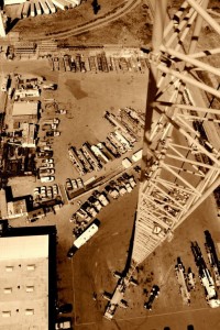 14. View from 350’ on a GMK 6350 overlooking Bragg Crane & Rigging yard