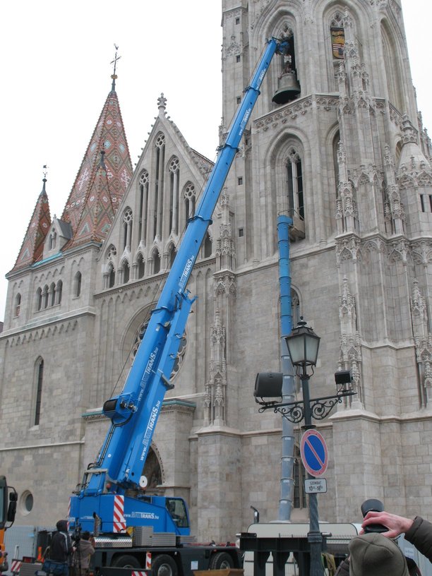 15. Budapest, Hungary. Terex AC 40 City crane lift a big bell (6800 lbs) , into the window of a Matthias church’s tower. They carved the window onto the shape of the bell, only some inches of gap remained between the window and the bell