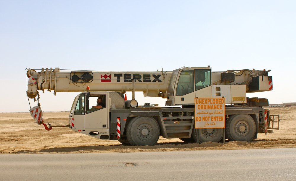 22. Photo was take in a UXO (unexploded ordnance field) in Iraq. The crane is an AC-50. The crane was used to move items for the military