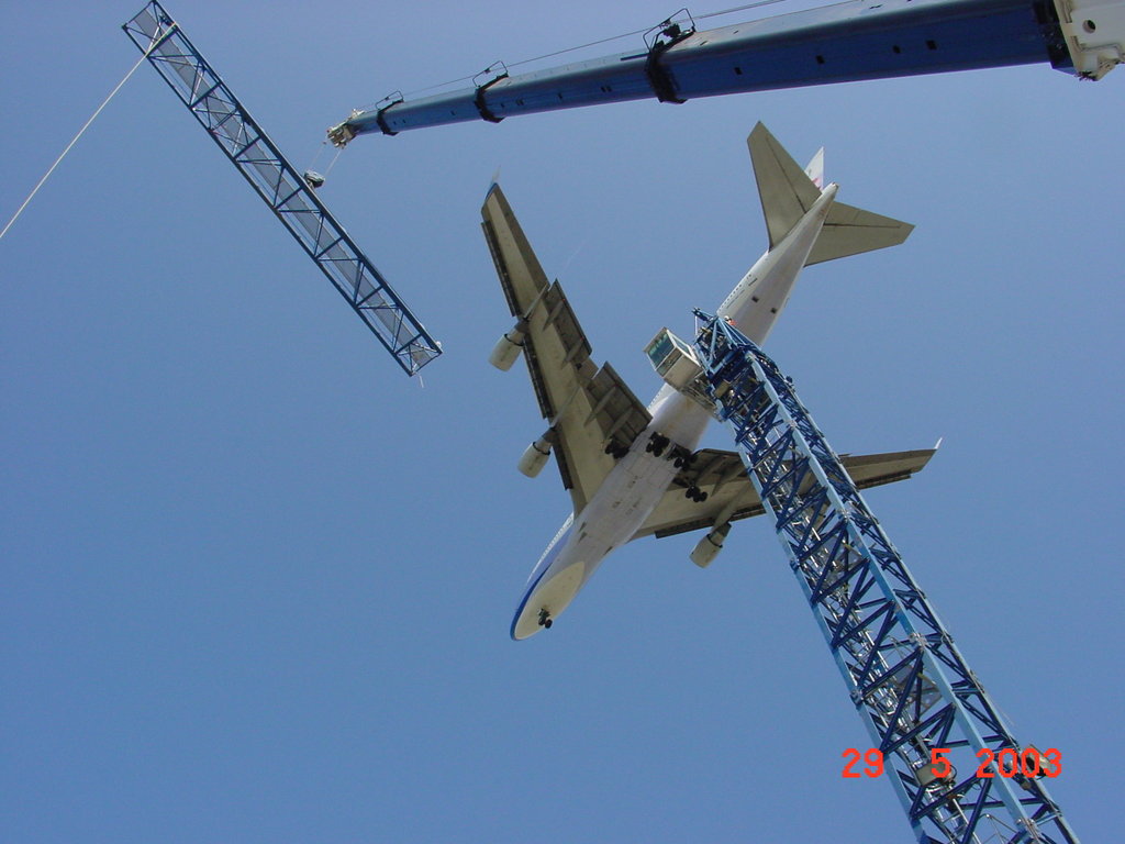 26. Here is a 747 fly over at the River Rock Casino crane erection.The tip wind meter rocketed up about 30 seconds after the plane passed by