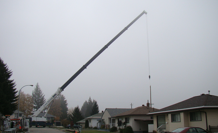 18) FortisBC crews setting power poles in Trail, British Columbia