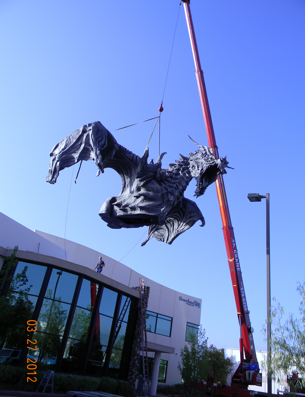 7) We are lifting the Dragon with our 30 ton terex. The dragon’s dimensions are: 12 foot tall, wingspan approx. 30 plus feet, weight: 1,000 lbs.