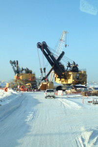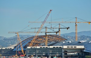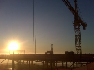 5) On the flight path at YVR in Vancouver. putting up crane at the River rock Casino