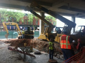 8) “2 90 ton linkbelts setting a 80,000 pound concrete structure. One thing unique is in the photo is 3 generations of Ncco certified crane opperators from a 71 year old grandpa to 45 year old son 20 year old grandson.”