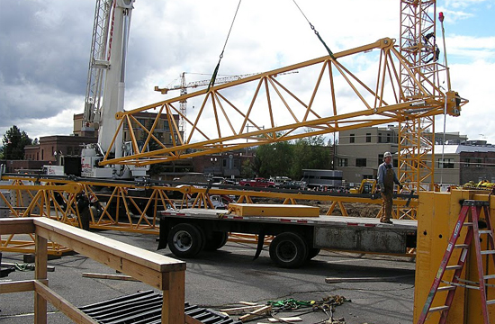 The entire process includes up to 13 trucks, can include seven crane erectors, three crane operators, two mobile cranes. If no problems occur, most cranes can be erected in one day by a competent crew. The installation of the ropes and load testing can take up to a full day as well, but on small cranes, it can be done in the same day. Erecting a tower crane costs range between $15,000 for the smallest of the fixed base cranes to over $60,000 for crane erections requiring large mobile cranes (Seattle Market Rates).