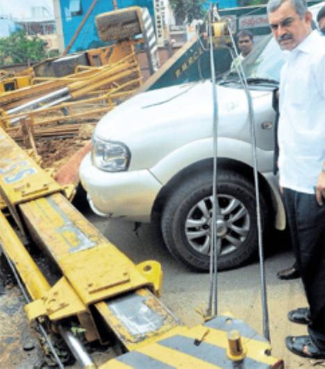The 12 tonne Hydra crane built by ACE, reportedly lifting a two tonne concrete pile, when the ground under its front wheels subsided causing it to tip over sideways with the three section boom dropping across the busy road. Officials from the Bangalore Metro Rail Corporation immediately blamed the incident on operator negligence and the fact that heavy rains had made the ground soft. Ram Tekker, chief engineer on the project said: “The hydra was lifting cement pile. The workers had not fixed the jack properly. The soil was loose as it had rained. The hydra turned to its left and fell on the road seconds after it started lifting a cement pile. “Usually, the hydra can lift weight up to 12 tonnes, but it turned turtle while lifting a cement pile of just two tonnes.”