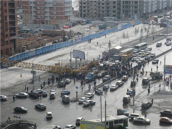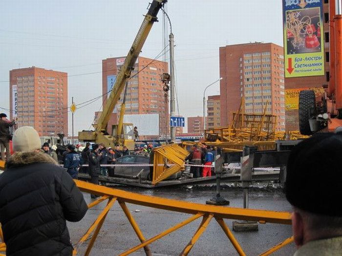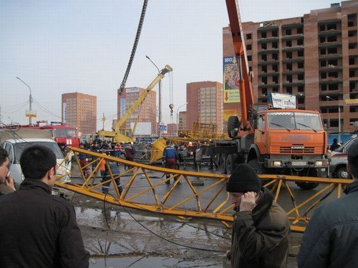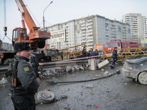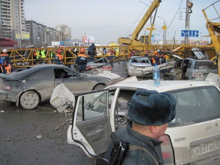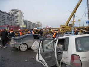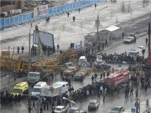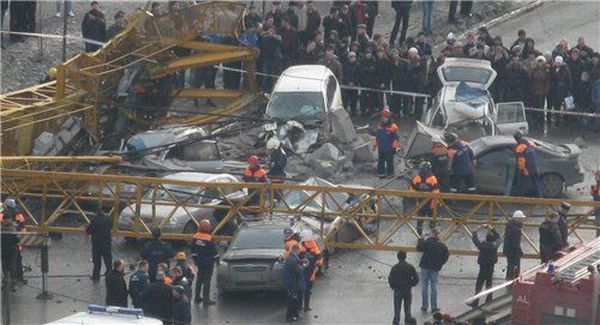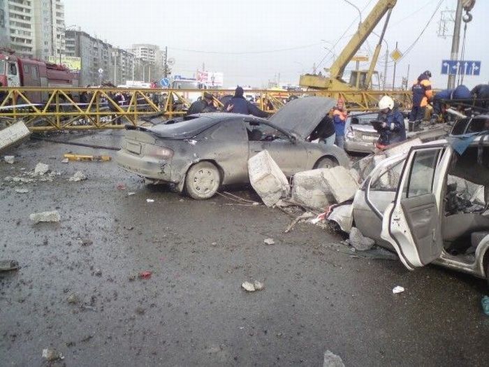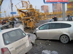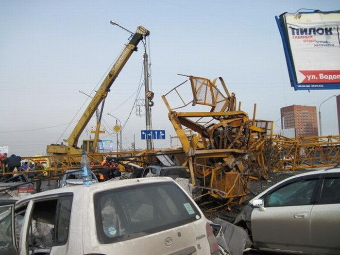 According to sources a crane accident in Krasnoyarsk, Russia collapsed leaving the operator dead and 5 people injured. On March 26th, 2010, the crane fell over a busy six lane highway. See Below.