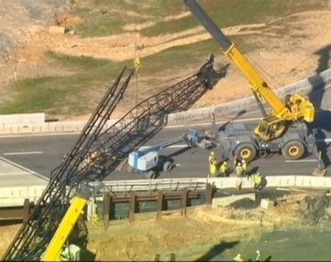 A lattice crane boom came down onto the Leesburg Pike near Tysons Corner to the west of Washington DC today.
