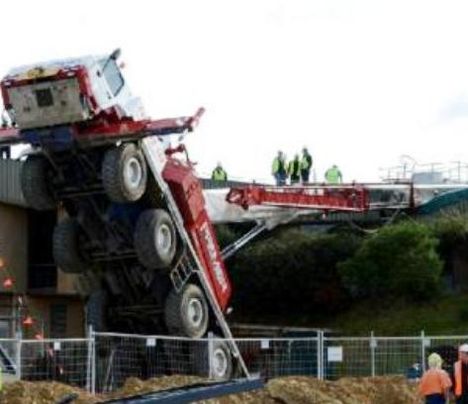 What caused the crane, a four axle Tadano Faun owned by Premier Cranes of Melbourne, to overturn is unclear as it was working from a well built temporary road and appears to be well set up. Premier runs a modern fleet of cranes and specialises in steel erection work.