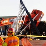 A mobile crane has tipped over this morning on a site in Sydney, Australia, landing on a steel structure and injuring a man on a scissor lift. The crane was erecting steel work when it tipped at a building site next to St Catherine of Siena school in the Prestons area of Sydney.
