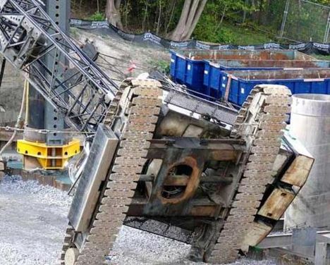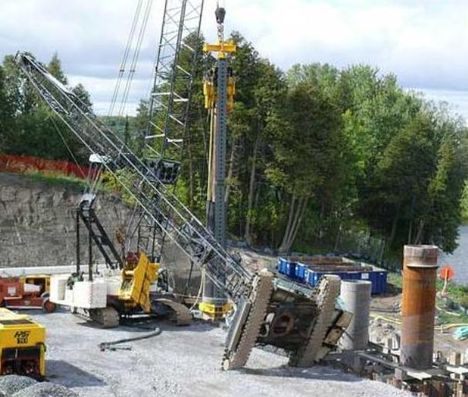 A crawler crane tipped over yesterday in Ottawa, Ontario, Canada no one was injured in the incident which occurred on the site of the new Strandherd Bridge. It is not clear what happened from the material we have been sent, but it looks as though the crane was extracting piles? The crane then appears to have tipped over rearwards landing on another crawler crane. The Ontario ministry of labour was investigating the accident yesterday.