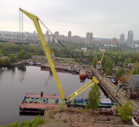 One of the largest floating cranes in Eastern Europe, the 680 tonne, 93 metre boom Zakharii LK-600 capsized yesterday while working on the Podilskyi-Voskresenskyi bridge over the Dnieper River in Kiev.