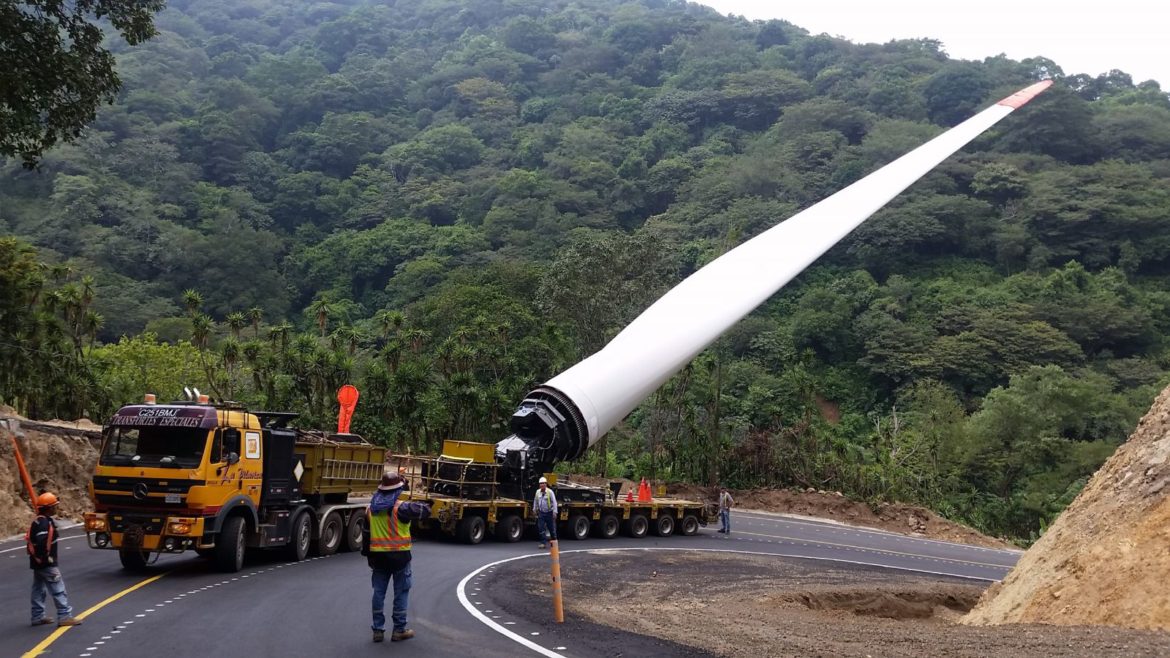 August 30, 2016 – The route to the Viento Blanco Wind Farm in Guatemala is 10 kilometers long and leads past an active volcano. It follows a narrow winding mountain road lined with trees and rock overhangs and gradients of up to 18% uphill and 13% downhill.
