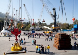 The company tour spanned all production facilities and included exhibitions of fully automated robot manufacturing techniques, new developments in control and drive technology, deep foundation machines, mobile harbour cranes or offshore cranes and the first hydraulic hybrid drive Pactronic for mobile harbour cranes, the Active Heave Compensation (AHC) system, and new crawler crane pendant straps made of carbon fibre.