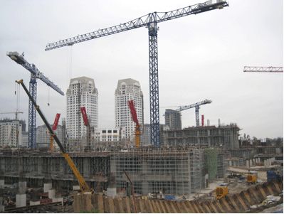 Two each of the 18 tonne capacity 21 LC 400 and 12 tonne 21 LC 290 flat top models will help construct the 336 m high main tower and two smaller towers, offering retail units and luxury residential and hotel accommodation.