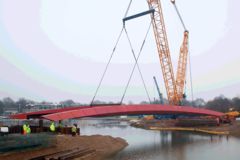 A new bridge has been lifted into place at the Eton College Rowing Centre at Dorney Lake near Windsor ahead of the London 2012 Olympic Games.