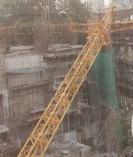 A brand new tower crane went over last week in Mumbai, India landing on a residential apartment block.