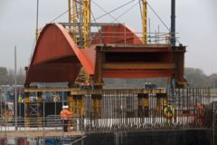 A bridge has been lifted into place in East London, UK, ready for the London Olympics in 2012, to provide a link into the Olympic Park for local residents in Hackney and Waltham Forest. The bridge spans Ruckholt Road, creating a new link between Hackney East Marsh and the Eton Manor site in the north of the Olympic Park. During the games, the new bridge will be the main route into the Olympic Park for spectators arriving at the Northern Spectator Mall. A temporary bridge was also lifted into place for the extra spectator numbers during the games. It will be removed when the games are over, and the main bridge will remain as access to the new sports and leisure facilities in Eton Manor, and into the wider Olympic Park site. One of the largest cranes in Europe was used to lift the 200-tonne permanent bridge structure into place. The arched bridge is 42 m long, 6 m wide. Work will now take place on the approach areas on both sides of the bridge. Construction work will be finished next year and the bridge will be used for the first time by spectators during the 2012 Games. The bridge work was carried out by Skanska.