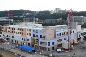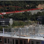 Knerr considered erecting the new Hyatt hotel with the Potain cranes a game changing method. He envisions other large buildings being constructed in the same manner, using Potain cranes to remotely fly in metal panels and traditional wood-framed panels.