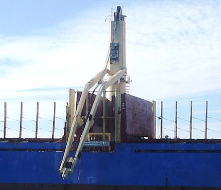 The 42 year old Filipino man was working on-board the Nordic Visby when the boom of the crane collapsed. After being struck by the wire ropes, he was taken to a hospital with substantial injuries and lacerations to his upper body. It is said his condition is still serious.