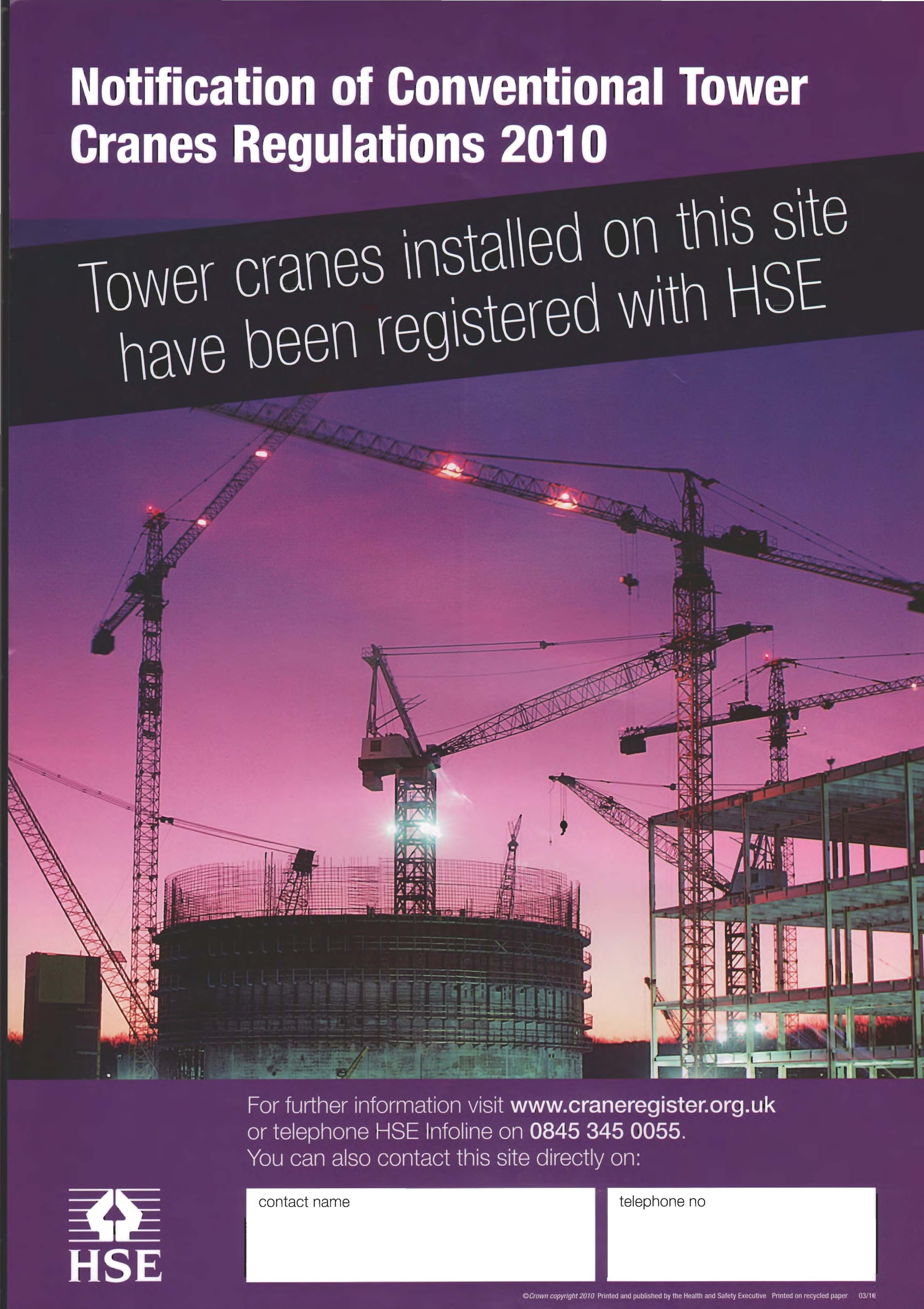 HSE explain how information on tower crane register will accessed by public The new Notification of Conventional Tower Cranes Regulations are now in force and a Crane Register website has now been established by HSE. The register forms part of a package of measures with HSE and the construction industry continuing to work closely to address issues around tower cranes such as improving the competence of installers/operators and improving design.