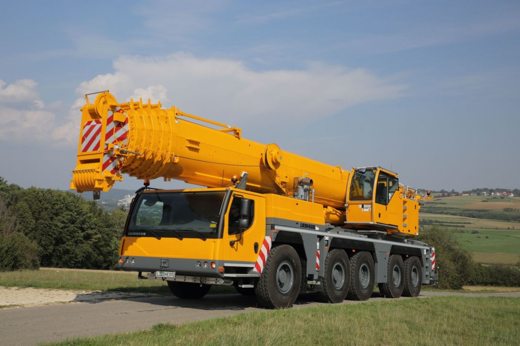 The 265-U.S. ton LTM 1220-5.2 is engineered for maximum lifting performance. The five-axle mobile crane’s 132,000-lb. weight optimizes load capacities. With a 197-ft. telescopic main boom and a 40- to 72-ft. long folding fly-jib system, the LTM 1220-5.2 sets the standard when it comes to lifting height and boom length.