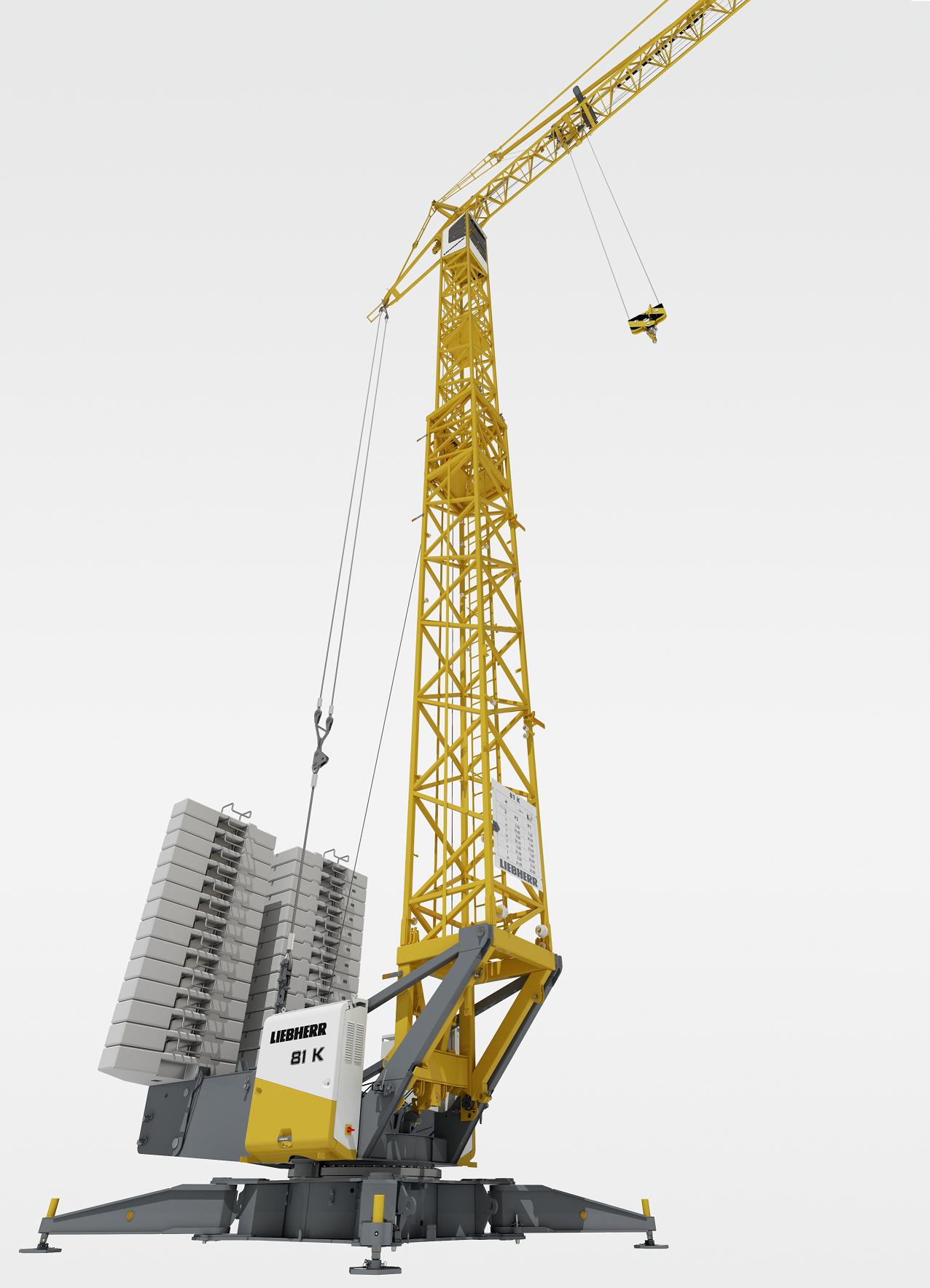 Liebherr is introducing the 81 K at the 2010 ‘Bauma’ trade fair, a brand-new fast-erecting crane of entirely new design, with the highest levels of performance. The 81 K sets new technological standards in its class, with many ingenious technical and visual features.