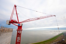 One of the fastest and most powerful tower cranes on the market is working to its limit on an industrial project in Germany. The giant red Wolff 1250B is pictured hoisting the numerous heavy parts needed to build the boiler support structure for a new power station in Wilhelmshaven. The available working space around the supporting structure of the boiler is very constricted and as a result there is very little room for crawler or telescopic cranes.
