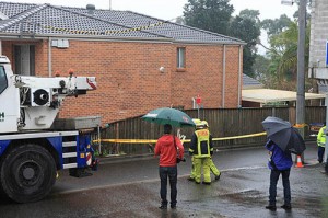 NSW Fire Emergency services were rushed to the scene of an accident involving a 35 Tonne crane in Hepburn Ave, Gladesville around 8am this morning. Reports were received that the mobile crane rolled back and hit a car in a laneway running off Hepburn Avenue.