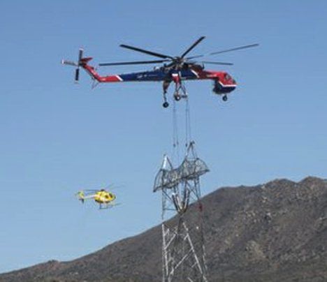This week one machine has dropped two seven tonne transmission towers alone. Early on Tuesday morning the Sun Bird Erickson air crane helicopter placing a tower close to a highway near San Diego in California, dropped a the load from a height of more than 70 metres. We understand that the highway was closed for the lift and no one was injured.