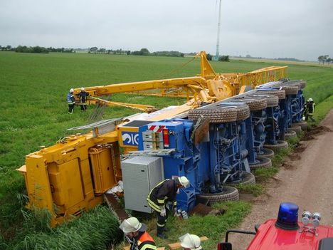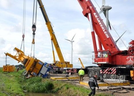 An eight axle All Terrain crane overturned last week on a wind farm in Wöhrden Schleswig-Holstein, northern Germany.