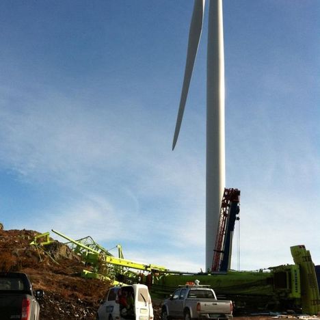 The crane a 500 tonne Liebherr owned by Nordic Crane, had completed a lift installing the blades on a turbine and was being moved during the night to another location, with luffing jib counterweight and Y-Guy super lift system in situ when it lost stability and overturned.