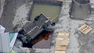 Leo Pascuzzi, Site Superintendant for Trafalgar Enterprises commented that although the insurance company wanted to delay removing the car, he knew that he could depend on Eagle West Cranes to provide the services he needed to safely and efficiently remove the car from the site. The day after the accident, Eagle West brought in cement barriers to secure the construction site and a remotely operated, 60 ton folding boom crane to raise the car safely out of the large excavation. “Eagle West really stepped up to the plate. I called the morning after the accident and needed a crane to pull out that car A.S.A.P. When I called, they knew exactly what to do, and did everything I asked – they didn’t have to but they did and they did it fast! The service I needed was done the same day I called”.