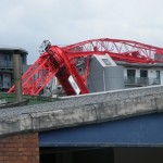 The Liverpool tower crane is being removed in the video below. It’s a good demonstration of what it takes to remove these cranes after they collapse. They have a self-erector to suspend the workrs cutting the crane apart. They have a 500 ton crane assisting the 800 ton. Clean up of this magnitude can easily approach one million dollars.I was involved with the clean up of the Bellevue crane collapse. The cutting apart of the crane is a long drawn out process to figure out weights, pick points, center of gravity, safe rigging practices and methods of cutting that will prevent shock loading to the crane. It is dangerous work for certain. .