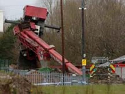 At a hearing at Liverpool Crown Court yesterday, prosecuting counsel, Nigel Lawrence told the court: that a third column, which was heavier than the previous two, needed to be turned though 80 degrees using a guide rope held by Thornton. Scott boomed down to increase the radius causing an overload situation. As the column turned, it caught in some trees which caused further instability. The crane’s front wheels lifted off the ground and the crane tipped, stranding Scott three metres off the ground but he managed to leap to safety.