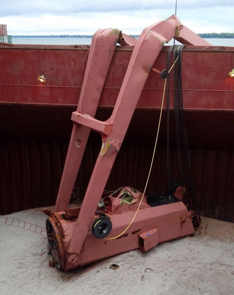The incident occurred while unloading at the port of Bécancour, Quebec when the slew ring failed and the crane fell into the hold. The crane operator, 45, suffered a broken ankle among other injuries. He was probably lucky in that the crane landed on sand in the hold, rather than dropping onto the concrete quay or into the water.