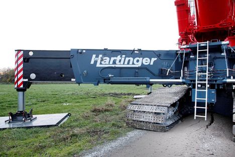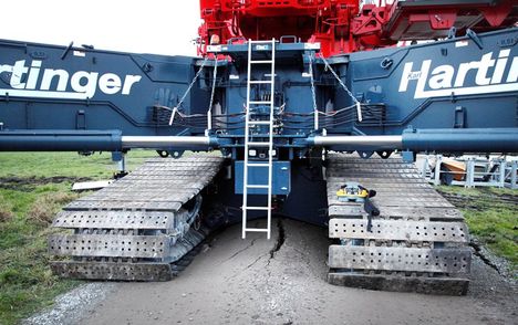 A strong risk assessment and planning, combined with a sharp operator saved a big crawler from tipping over. The crane, a 1,200 tonne Liebherr LTR11200 telescopic belonging to Karl Hartinger Kranbetrieb of Rimbeck-Warburg in Germany, was working on new wind farm being erected on moorland with a peat bog substrate. The crane, which features a narrow-track option- specifically for such wind farm work – had completed one turbine and was travelling fully equipped to the next one when the ground started to give way.