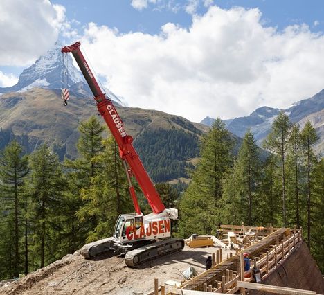 Swiss rental company Clausen Kran has driven its new 60 tonne Liebherr LTR 1060 telescopic crawler crane to the top of an Alpine mountain to work on the one of the highest railway tunnels in the Alps.