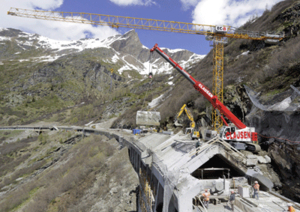 Swiss crane and transport company Clausen Kran used a Liebherr LTR 1060 telescopic crawler crane to replace a protective traffic structure on the Simplon Pass in the Alps.