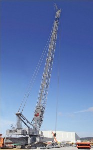The narrow-track versions of Liebherr crawler cranes includes large cruciform swing-out outriggers which can positioned to the front and rear of the crane with the jack pads remaining close to and almost skimming the ground, so that should the tracks begin to sink, they can be quickly lowered to improve crane’s stability and halt the sinking.