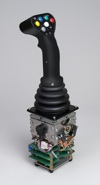 J.R. Merritt, Stratford, Conn., has introduced the XL-VNSO Hall-effect joystick controller. The new controller was derived from the high duty-cycle XL-VNSO potentiometric joystick, and uses non-contacting Hall-effect technology. Hall-effect output meets or exceeds CE EMC requirements. This 1-, 2- and 3-axis super rugged joystick for high-duty cycle applications and rough environments is designed to provide precise control of electro-hydraulic proportional valves commonly found on off-road mobile equipment. The XL-VNSO joystick will also accommodate applications that require digital or analog command signals to control variable-speed drives, PLCs and microprocessors, including CANbus, according to the manufacturer. Some of the features of the XL-VNSO include nickel chromium gimbal yokes; hardened steel bearings; polished steel shaft guides; bronze gate handle stops; and dual compression return springs in each axis. A variety of standard and custom gates and a large selection of handles are available. The XL-VNSO Hall-effect, high duty-cycle joystick controller is suitable for use on cranes, bucket trucks, aerial work platforms and material handling equipment in the forestry, mining, and construction industries.