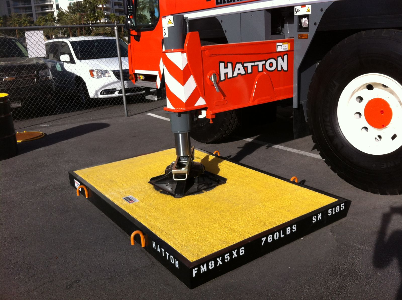 FiberMax crane mats are available in four sizes: 60″x 60″, 72″x 72″, 84″x 84″, and 96″x 96″. They are chemical and water resistant and provide a non-slip wear surface. The fiber-reinforced materials are protected in a steel frame and have steel lifting points.