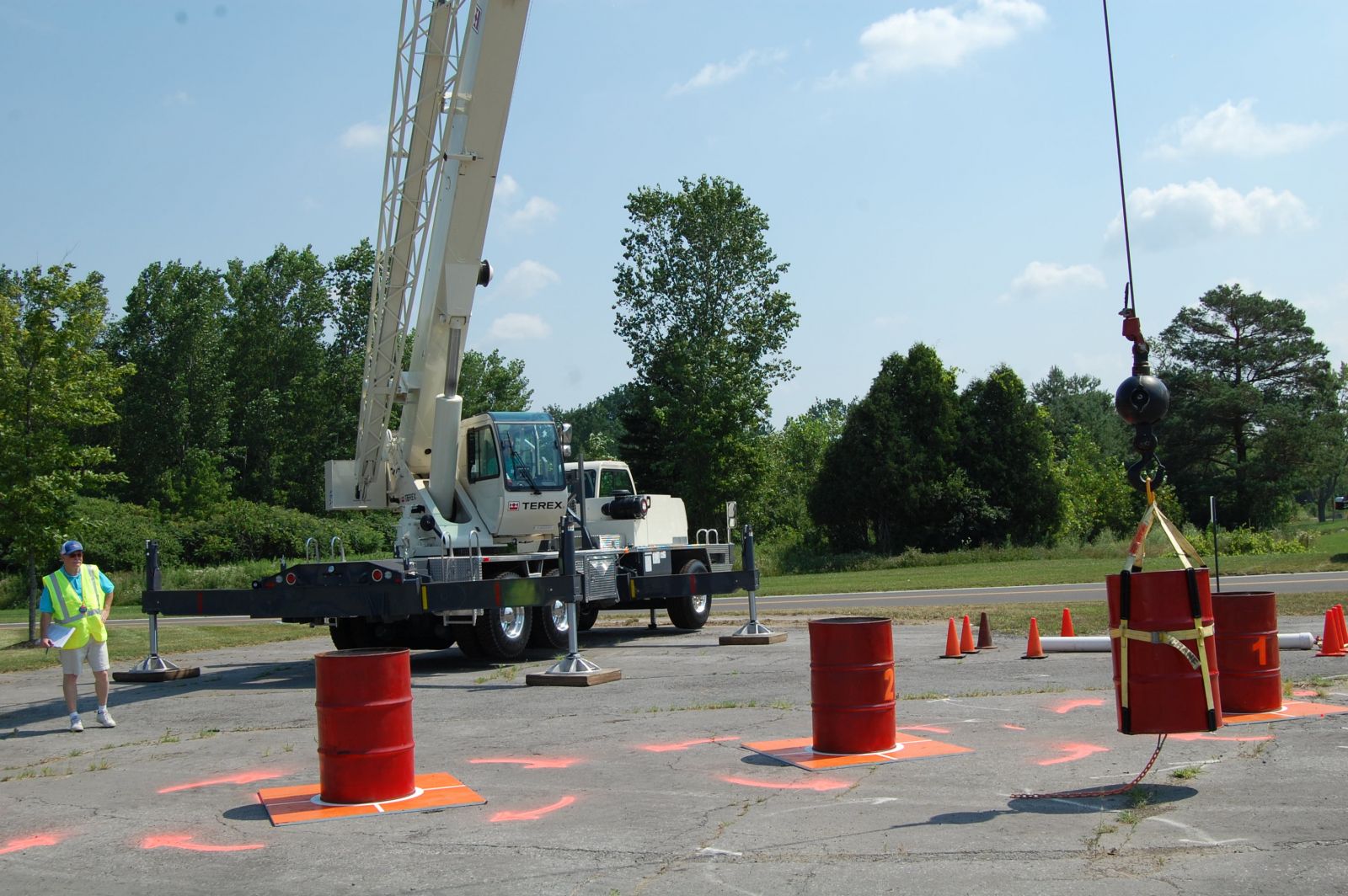 Operators ran a Terex T340-1 truck crane at this regional event—a model that Paul Lonergan, president of Empire Crane, said was selected because it is a popular crane for the industry. Boom length was set for 70 ft. for each test on the course. Judges included Jim Headley of the Crane Institute of America, Henry Brozyna of Columbus McKinnon, and Jay Sturm of Cranes 101. All three are examiners for Crane Institute Certification, a nationally accredited crane operator certification program.